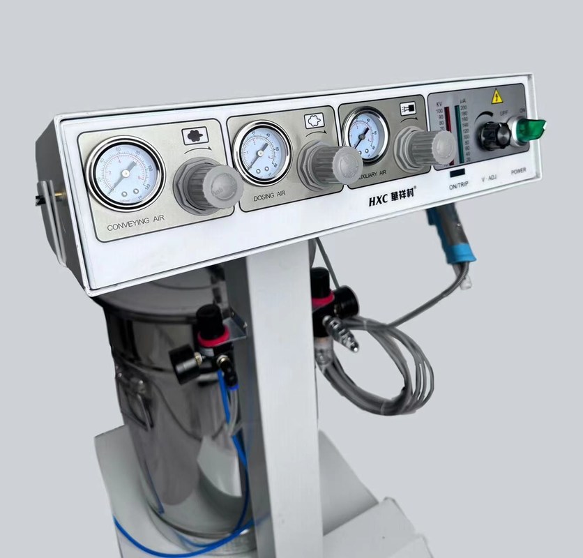 5.HXC machine de revêtement en poudre électrostatique est généralement appliquée électrostatiquement et est ensuite durcie sous chaleur pour lui permettre de circuler et de former une "peau".Appliquer le revêtement de poudre électrostatique sur les objets est de donner une charge électrique négative à la poudre, qui est ensuite pulvérisé vers votre pièce à usiner par électrostatique haute tension et puis la puissance sera attirée sur la pièce à usiner.